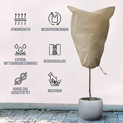 Tropictrees Winterbescherming XXL (180 x 120 cm), voor planten en bomen, ademende winterbescherming voor planten met…
