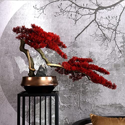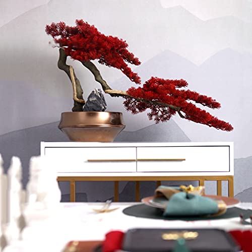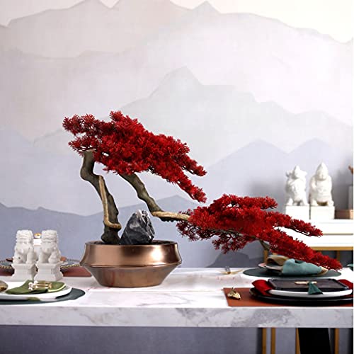 Specification: Artificial Trees Artificial Tree Bonsai Creative Red Leaf Tree Bonsai Golden Flowerpot Stone Landscaping Living Room…